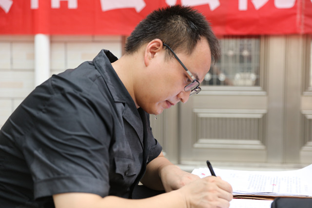 “相邻纠纷解决不好,有可能影响好几代人,咱到现场看一看、量一量、听一听,争取把案件调解了。”在法庭工作例会上,平国良庭长对化解该案专门进行了安排。8月8日上午,其带领书记员等一行4人来到纠纷现场,布置了简易而又不失庄严的巡回审判法庭。庭前,审判人员冒着近40℃的高温,到原告责任田内实地查看,对争议土地及建筑砖块进行丈量,听取双方当事人陈述,向街坊邻居了解了相关细节。“通过刚才掌握的情况,大家心里其实都有数,俗话说的好,远亲不如近邻,和睦相处才是福啊!”在调解案件过程中,法官平国良与书记员等人分别做原、被告思想工作。“大家都消消气,降降温,邻居之间姿态都放高一点,这事儿就算过去了。”调解热情胜过三伏天的热浪,一边调解一边做笔录,豆大的汗珠像断了线的珠子往下淌,制服被汗水浸透像刚洗过一样,看到审判人员冒暑不辞辛苦为自家的事忙碌,最终双方均同意坐下来说事,并成功促使双方达成了调解协议。