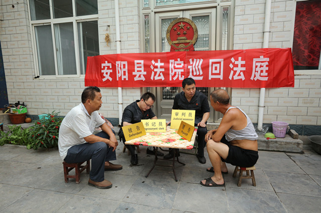 8月8日上午,安阳县人民法院铜冶法庭庭长平国良和书记员焦文强等一行4人,冒暑来到辖区铜冶镇南街村,对一起因相邻关系引起的排除妨害纠纷案现场进行调解,并促使双方达成了调解协议。