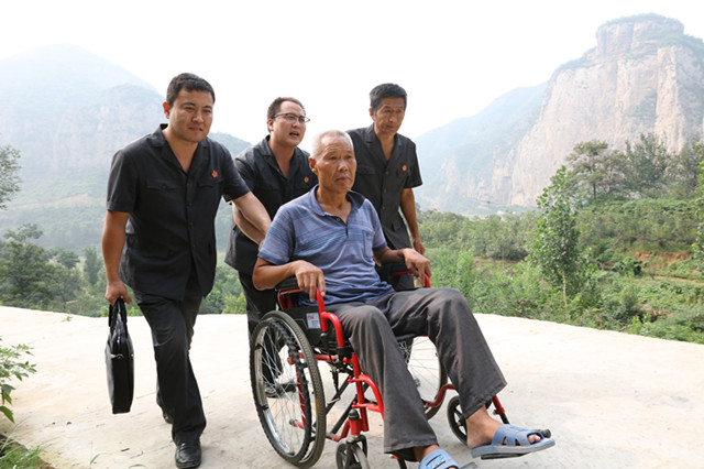 “我现在坐着轮椅,出山一趟不容易,我想打官司你们能来吗?”8月初,董老汉抱着试一试的心态拨通了铜冶法庭立案室的电话,法庭庭长平国良在了解到董老汉的实际情况后,决定尽快上门为其办理立案手续。由于董老汉村庄在大山深处,山路崎岖难行,8月8日13时许,刚吃过午饭,平国良带领法庭干警决定提前出发,并电话与董老汉进行了沟通,约定了时间。行车途中,由于正处于汛期,部分路段正在施工进行防汛除险,警车沿着崎岖山路前行先后两次被堵,干警多方联系,辗转河北磁县、涉县等地绕行,行程2个多小时,到达了三里湾村口。得知法庭干警要上门来,董老汉坐着轮椅提前到村口等候。干警推着董老汉来到其家中,审核了相关材料,现场为其办理了立案和委托手续。期间,平国良庭长还对董老汉进行了安抚,叮嘱其安心养病、好好生活,法庭会尽全力提供司法服务,确保其合法权益及时得到保障。