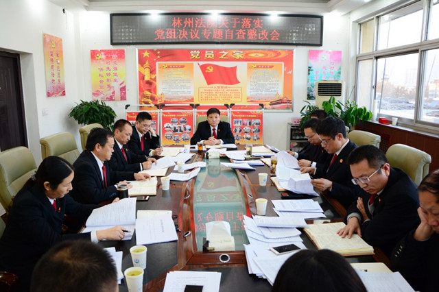 11月21日下午,林州市人民法院召开关于落实党组决议专题自查整改会议。会议主题围绕落实全面从严治院要求,对2016年以来涉及党组决议落实不力及推进缓慢的情况进行了通报,并认真开展自查。法院班子成员及审委会专职委员参加了会议。党组书记、院长王健主持并讲话。
