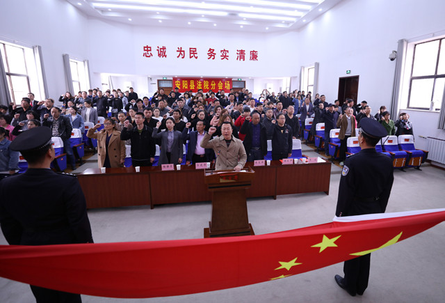 4月2日上午,安阳县法院召开新任人民陪审员就职宣誓仪式暨培训会。县人大干部科科长杨刘平、县人大法工委主任常金波、县司法局副局长王凤芹应邀出席会议。会议由该院党组副书记、常务副院长马玉萍主持。