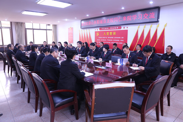 4月12日上午,山西阳城县法院党组副书记、常务副院长焦二龙一行20余人专程到安阳县法院,就审判业务、党建工作、诉讼调解、法庭建设等方面进行学习交流,该院党组书记、院长景瑞红参加座谈,该院党组副书记、常务副院长马玉萍及相关部门负责人全程陪同。