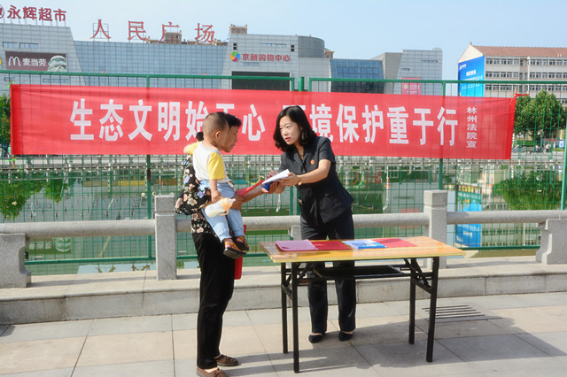 为迎接第48个世界环境日的到来,6月4日上午,林州市人民法院组织干警和部分志愿者在市人民广场开展世界环境日普法宣传活动,倡导周边群众积极践行绿色环保的生活理念。