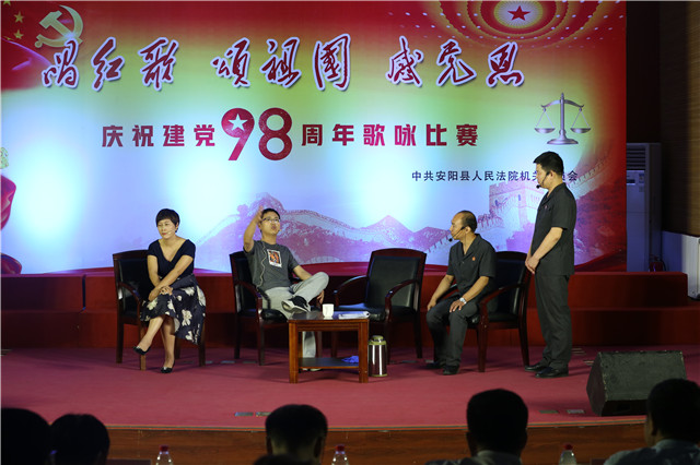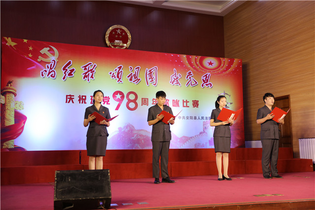 为进一步增强党组织的凝聚力和战斗力,6月28日下午,河南省安阳县人民法院举行了“唱红歌、颂祖国、感党恩”庆祝建党98周年歌咏比赛。来自该院200余名干警及退休老干部在此欢聚一堂,唱响时代主旋律,用歌声表达对祖国的热爱。比赛现场,参赛队伍满怀激情、歌声嘹亮,干警们以大合唱、诗歌朗诵、小品、独唱等丰富多彩的形式,向党的98岁生日献礼。