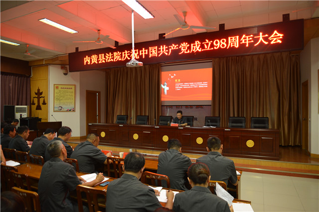 为庆祝中国共产党建党98周年,回顾党的光辉历史,讴歌党的丰功伟绩,发扬党的优良传统,进一步教育引导广大党员深入学习贯彻习近平新时代中国特色社会主义思想和党的十九大精神,树牢“四个意识”,坚定“四个自信”,坚决做到“两个维护”,扎实做好“三大提升”各项工作,全面创建“三个一流”。7月1日下午,内黄县法院在四楼会议室召开了庆祝中国共产党建党98周年大会。