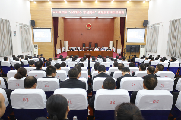 9月20日下午,安阳县法院召开“不忘初心、牢记使命”主题教育动员部署会,该院党组书记、院长景瑞红在会上做了动员讲话,县委第五巡回指导组副组长刘海军同志到会指导并做了强调部署,该院全体法官及工作人员参加会议,会议由该院党组副书记、常务副院长马玉萍主持。