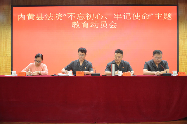 内黄县法院按照党中央部署和省委、市委、县委要求,从2019年9月开始,开展“不忘初心、牢记使命”主题教育。成立主题教育领导小组,党组书记、院长王海军为组长,党组成员、副院长张峰、刘晓峰为副组长,成员为赵辉、尚留伟、张明霞。领导小组下设办公室,办公室设在政治部,党组成员、副院长刘晓峰兼任办公室主任,政治部主任武军强任办公室副主任。办公室负责落实完成领导交办事项,以及收集、报送、反馈主题教育相关情况。