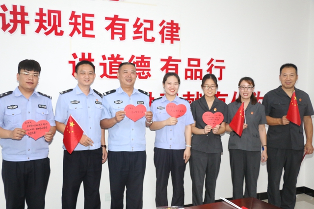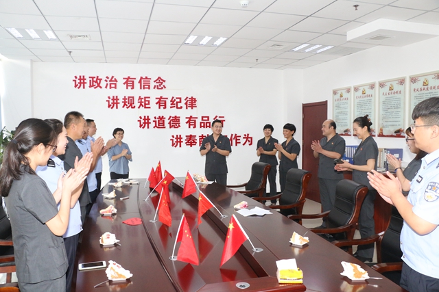 新中国成立70周年到来之际,为使干警感受到集体大家庭的温暖,增强自豪感、荣誉感和归属感, 9月30日下午,安阳市龙安区人民法院工会提前为10月生日的干警集体过生日,让他们与祖国同庆,度过了一个特殊而难忘的生日。龙安区法院党组书记、院长李东华、党组成员李银平、政治部主任闵文庆亲临现场,共祝祖国和大家生日快乐。