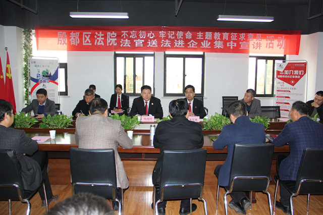 为依法保护民营企业合法权益,不断优化营商环境、助推企业创新发展,11月12日,殷都区法院到河南钢多实业有限责任公司开展“不忘初心、牢记使命”主题教育征求意见暨法官送法进企业集中宣讲活动。会议由安阳市中小企业协会会长、河南钢多实业有限公司董事长赵宝臣主持,并邀请了20名安阳市中小企业家参加座谈。殷都区法院党组书记、院长高尚用,副院长李军林出席座谈。
