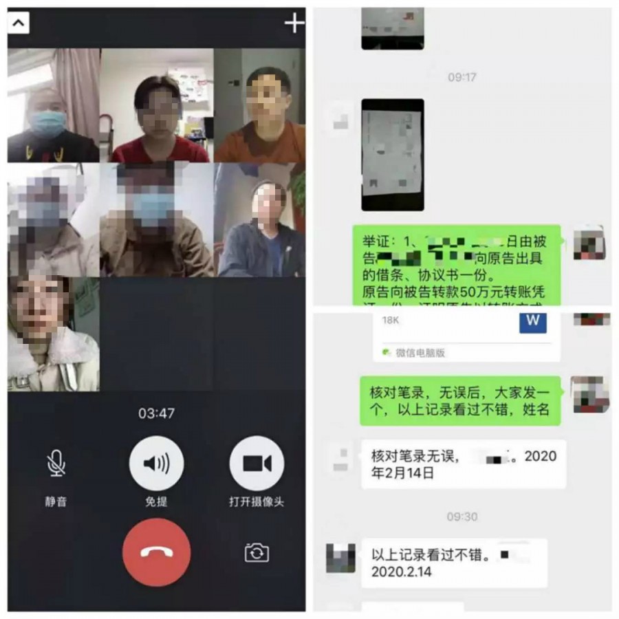 承办法官封志勇考虑到目前正处于疫情防控期间,不便组织当事人现场开庭,在征得双方当事人同意后,决定通过微信视频开庭形式,对案件进行“隔空”审理。为使庭审更加公开透明,封志勇法官联系到两名人民陪审员参与庭审。陪审员没有任何迟疑,在家中,克服困难,充分了解案情,熟悉相关法律条文,对案件有疑问的地方与封志勇法官进行反复沟通。