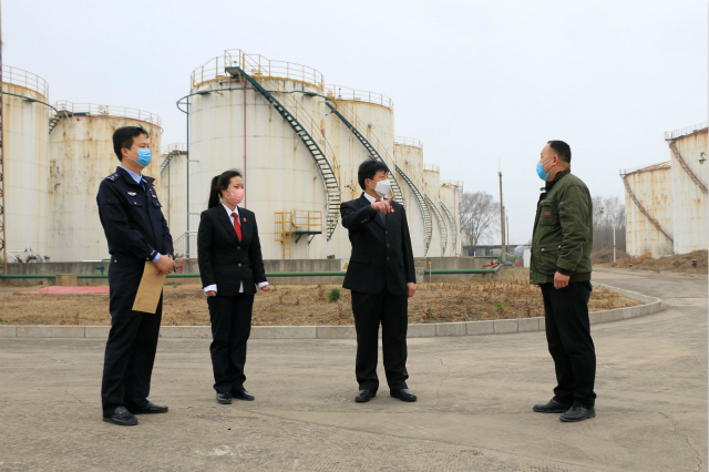 防控就是命令,抗疫就是战役。河南省安阳市龙安区人民法院在战“疫”期间,按照“战疫、审判、执行齐抓共管”的总体要求,积极发挥司法职能,切实服务和保障当地企业有序复工复产。他们通过走访慰问、指导企业制订疫情防控方案、提供依法防控法律帮助、开辟“涉企”案件审判和执行绿色办理通道、监督安全生产等方式,帮助企业解决复工复产中的实际困难。图为2月26日,该院诉讼服务中心的法官到当地一家石油燃气公司实地走访,指导公司安全有序复产。