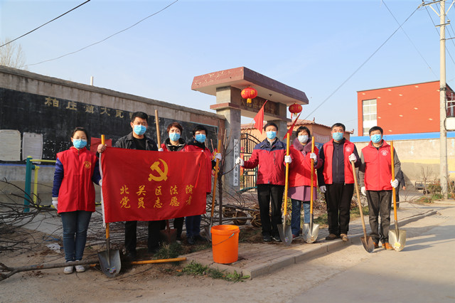 在这个特殊的植树节,北关法院党组书记、院长李春旺带领党员志愿者们赴结对帮扶的大瓦窑村开展志愿服务植树活动,助力改善农村人居环境。