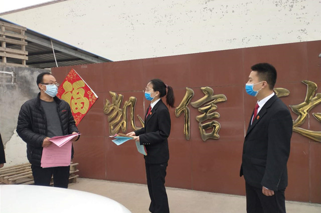 3月27日,文峰区人民法院宝莲寺法庭开展送法进企业法律宣传活动,助力辖区内小微企业迅速复工、复产。