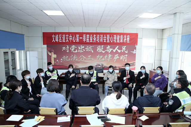 4月24日上午,文峰区道交一体化处理中心组织召开2020年第一季度业务培训会暨心理健康讲座,会议由文峰区人民法院民事审判庭副庭长王飞主持,区法院特邀调解员、中心人民调解员及市交警支队第二大队干警参加会议。