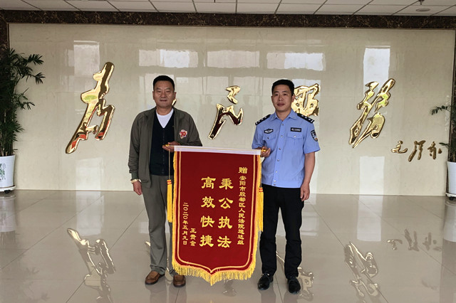 5月9日下午,当事人王某来到殷都区人民法院,为殷都区法院民事审判庭送达组送上了“秉公执法 高效快捷”的锦旗,对法院为民解忧和公正高效的工作作风表示衷心的感谢。