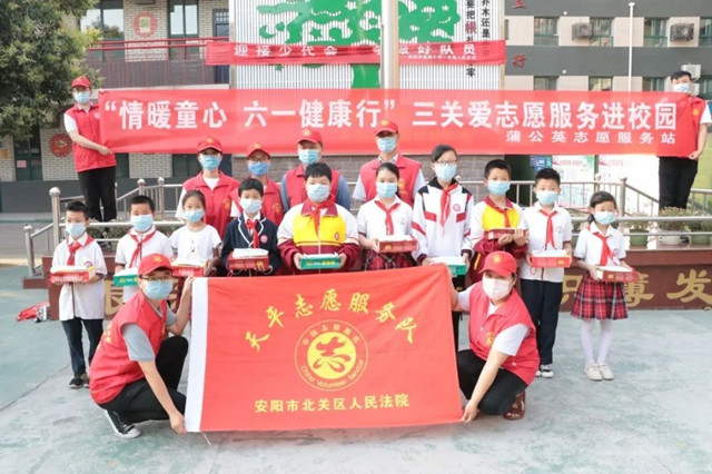在“六一”国际儿童节到来之际,为了让家庭困难的儿童也能过一个健康、快乐的节日,感受到来自社会的关爱,5月29日下午,安阳市北关区人民法院天平志愿服务队到安阳市盘庚小学开展“情暖童心 健康六一行”三关爱志愿服务进校园活动。