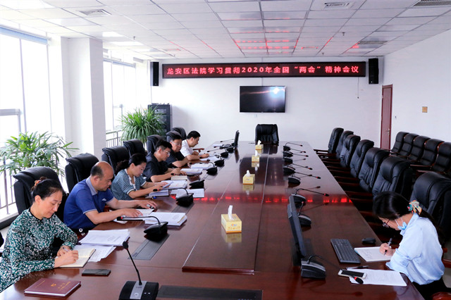 6月1日,安阳市龙安区人民法院召开党组中心组理论学习会议,认真学习传达贯彻全国“两会”精神。会议由院党组书记、院长李东华主持,党组成员参加会议。
