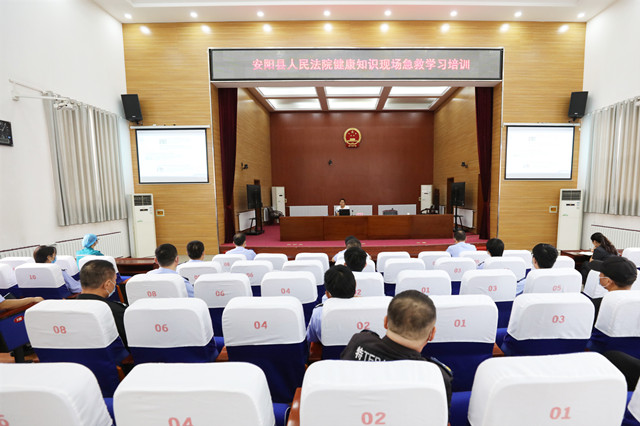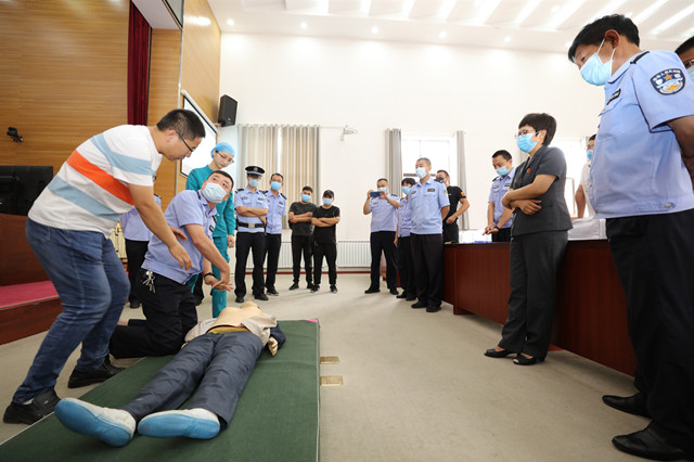 为进一步强化司法警察急救知识和现场救护技能,7月15日上午,安阳县人民法院邀请安阳地区医院急诊科陈瑞锋主任,对全体司法警察及安保人员进行健康知识现场急救培训。