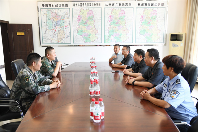 在“八一”建军节来临之际,7月31日上午,林州市人民法院党组书记、院长王健一行走进市武装部、驻看守所武警中队和消防红旗渠中队开展走访慰问活动,共同庆祝建军93周年的到来。