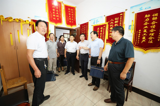 8月7日,安阳市人大常委会委员、内司工委主任宋胜利一行13人到安阳县人民法院调研加强司法保障优化营商环境工作。安阳市中级人民法院党组成员、副院长王韶方,安阳县委常委、政法委书记曹阳,安阳县人大常委会副主任李林海,安阳县人民法院党组书记、院长景瑞红等参与调研座谈。