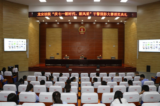 经过2个多月的努力,采风拍摄、作品征集、认真评选,于近日揭晓,其中刘震的《红船前重温入党誓词》获一等奖,徐世芳的《宣誓》和赵龙城的《彩虹》获二等奖,张琰成等人4人获三等奖,李银平等4人获特别奖,郑庆丰等3人获最佳新人奖,宁丽霞等19人获优秀奖。本次摄影大赛表彰大会8月14日上午在龙安法院举行。会议由党组成员、政治部主任闵文庆主持,党组成员、副院长周玉鑫在表彰大会上致辞。