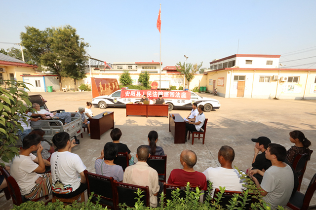 8月28日下午,安阳县人民法院水冶法庭法官张磊、书记员高锐等一行8人,深入西麻水村委会公开开庭审理一起赡养纠纷案。