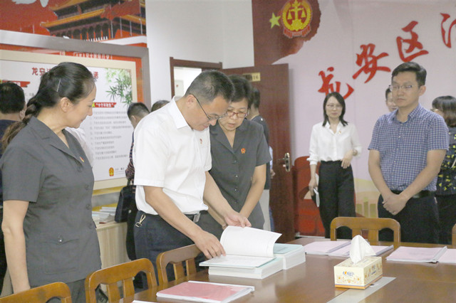 为进一步夯实机关党建工作基础,全面提升机关党建工作水平,促进各机关党组织之间相互交流、相互学习,9月23号,龙安区常委、组织部部长林文国带领区直党建示范单位主要负责同志一行40余人,到安阳市龙安区人民法院现场观摩交流党建工作。龙安区法院党组书记、院长李东华,龙安区法院党组成员、政治部主任闵文庆陪同观摩。