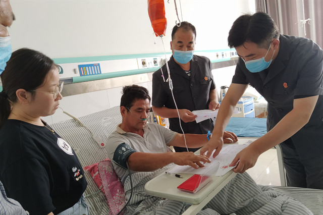 近日,安阳县人民法院许家沟法庭法官郭建岭、书记员路文军等一行3人,深入安阳县人民医院病房内对一起提供劳务者受害纠纷案进行现场调解,最终促使双方当事人达成了一致意见,被告刘某履行了赔偿款30万元。