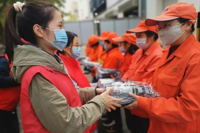 志愿者们向环卫工人表示深深的感谢,是他们用双手带走了脏乱,扮靓了城市。考虑到环卫工人们在室外恶劣的环境中工作,志愿者们精心准备了大容量水杯、保暖手套、护手霜、香皂等物品,让他们在冬天也能得到温暖的呵护。