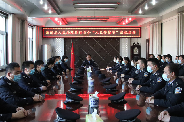 为深入贯彻落实重要训词精神,欢庆首个“中国人民警察节”,汤阴县法院组织开展了重温入警誓词、合唱《人民法院司法警察之歌》等系列活动。法警大队队长周军富带领全体法警重温重要训词精神,并带领全体法警重温入警誓词,法警警容严整,紧握右拳,面对警旗,庄严宣誓。随后,全体法警齐声高唱《人民法院司法警察之歌》,回望从警初心、牢记神圣使命、坚定理想信念。