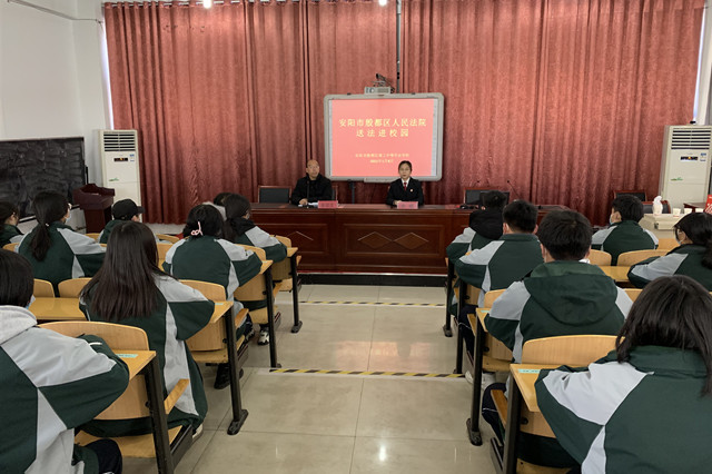 为进一步增强青少年的法律意识和法制观念,1月8日上午,作为安阳县理工中等专业学校法治副校长、殷都区人民法院刑庭员额法官李瑞前往该校开展“法治进校园”活动,为广大师生上好2021年“法制安全第一课”。