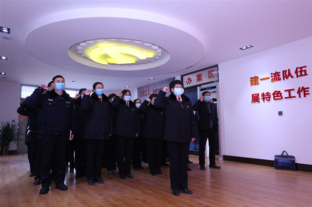 参观活动结束后,干警们面对党旗紧握右拳,重温了入党誓词。干警们纷纷表示,在以后的工作中要坚定理想信念,自觉增强廉洁意识,加强作风建设,不断提高拒腐防变和抵御风险的能力,永葆初心、践行使命,公正司法,廉洁司法,努力让人民群众在每一起司法案件中感受到公平正义。