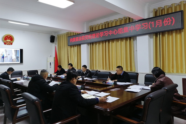 2021年1月11日下午,河南省安阳市内黄县法院党组理论学习中心组组织2021年第一次集中学习,深入学习贯彻习近平新时代中国特色社会主义思想,传达学习习近平总书记在全国政法工作会议上的重要讲话精神。党组书记、院长王海军主持学习并讲话,全体党组成员参加了本次学习。