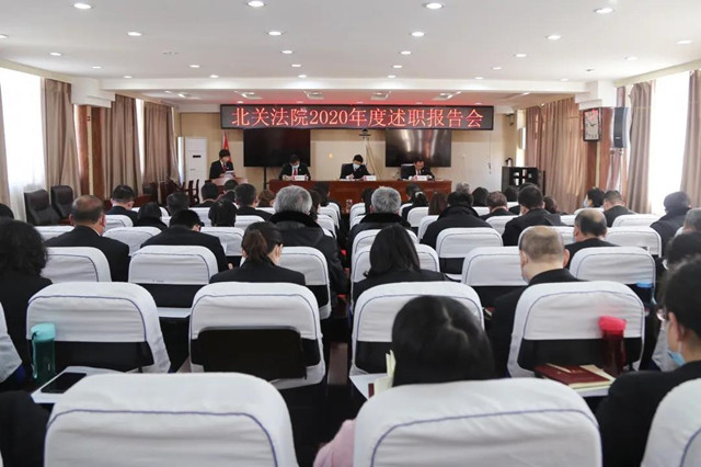 1月8日下午,安阳市北关区人民法院召开2020年度述职报告会,会议由党组成员、副院长付田林主持,全体干警参加会议。