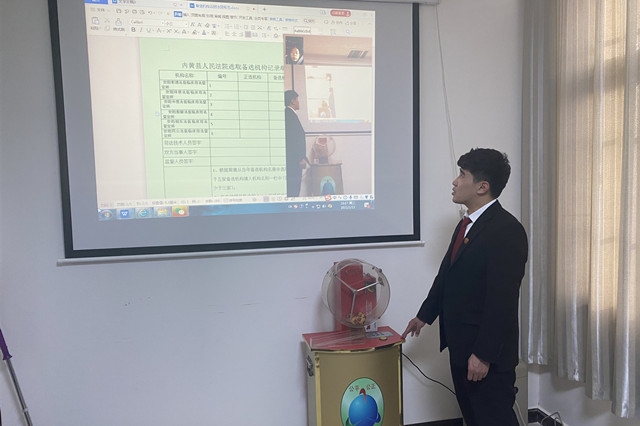 现场,在任某的代理律师和保险公司负责人的见证下,郭大盟通过电话的方式与郭某取得联系添加微信。然后通过投影仪将各方微信视频显示于大屏幕,以远程的方式现场摇号,随机选定鉴定机构。到场的任某代理人和保险公司负责人,以及远在河北的郭某均对法院司法鉴定工作团队的这一项工作表示满意,对选定的机构无异议,司法鉴定工作顺利开展。