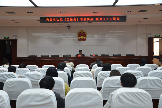 为深入学习贯彻习近平总书记重要讲话精神,认真贯彻中央关于学习和贯彻实施民法典工作的重要部署和要求,认真学习好、宣传好、贯彻好民法典。安阳市内黄县法院党组将民法典学习培训工作作为当前和今后一个时期干警教育培训的重中之重。1月28日下午,内黄县法院举办了民法典专题讲座第五讲。讲座由内黄县法院审判委员会委员、民二庭庭长、一级法官申学风担任主讲人,该院政治部主任武军强主持。该院员额法官、法官助理、书记员40余名干警参加。