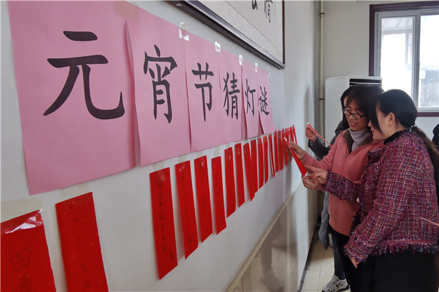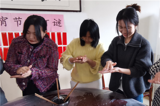 汤圆包好后,在等着下汤圆的功夫,干警又玩起了猜灯谜游戏,大家三三两两聚在一起,仔细揣摩、冥思苦想,每当有人说出正确答案,都引来其他人的欢呼点赞。