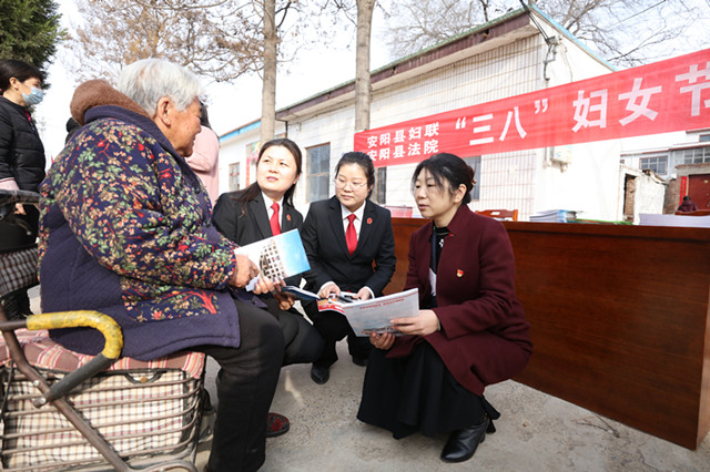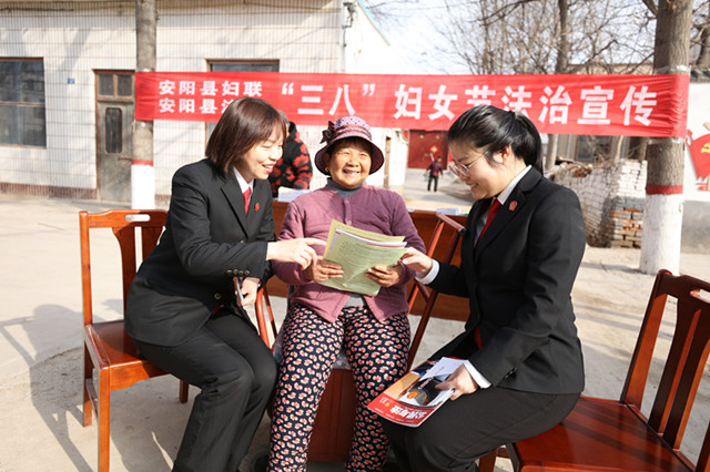 为庆祝“三八”国际妇女节的到来,3月5日上午,安阳县人民法院联合安阳县妇女联合会,深入辖区高庄镇高庄村,开展了“三八”妇女节法治宣传进乡村活动。该院将《民法典》中涉及婚姻、赡养、继承以及《刑法》中涉及家庭暴力等方面的相关条款印制成册,通过发放普法资料、悬挂宣传条幅、提供法律咨询等方式,进一步增强了广大妇女的维权意识。