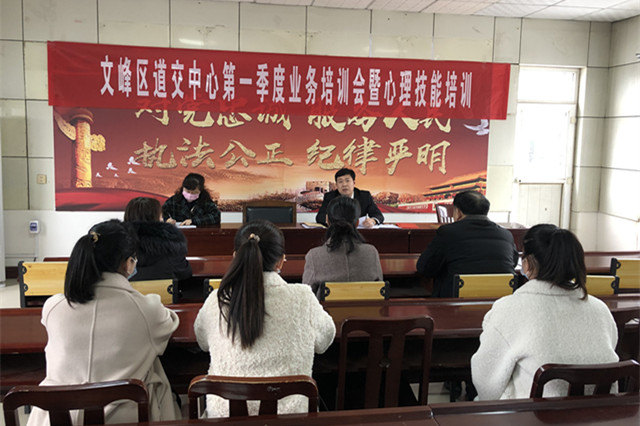 3月12日下午,文峰区道交一体化处理中心组织召开2021年第一季度工作培训会,中心人民调解员参加。会议由文峰区法院民事审判庭副庭长王飞主持。