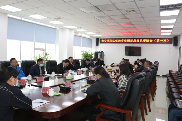 为深入推进政法队伍教育整顿工作,践行司法为民宗旨,3月19日,安阳市龙安区人民法院开展队伍教育整顿征求意见座谈会,邀请人大代表、政协委员代表、企业家代表、律师代表、人民陪审员代表、村(社区)干部代表、群众代表等19名社会各界人士走进法院,零距离感受“阳光审判”。