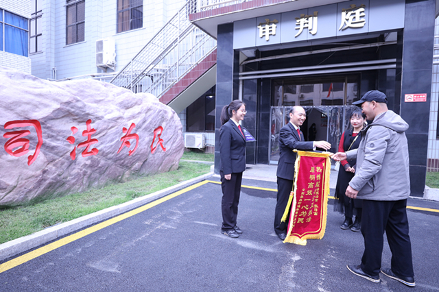 “张庭长想方设法找被告进行调解,这面锦旗俺心里送的舒服,您当之无愧,就收下吧!”4月26日上午,原告袁某将一面印有“热情服务公正执法、廉明高效一心为民”的锦旗,送到河南省安阳县人民法院张日富法官手中后感慨万千,并表示诚挚的谢意!