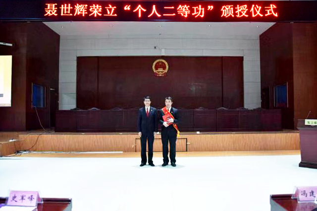 近日,河南省高级人民法院授予聂世辉的“个人二等功”荣誉证书和奖章到达滑县法院。为表彰先进,树立榜样,4月21日下午,滑县法院在第一审判庭举行热烈的颁奖仪式,党组书记、院长史军峰为聂世辉颁发荣誉证书、奖章。