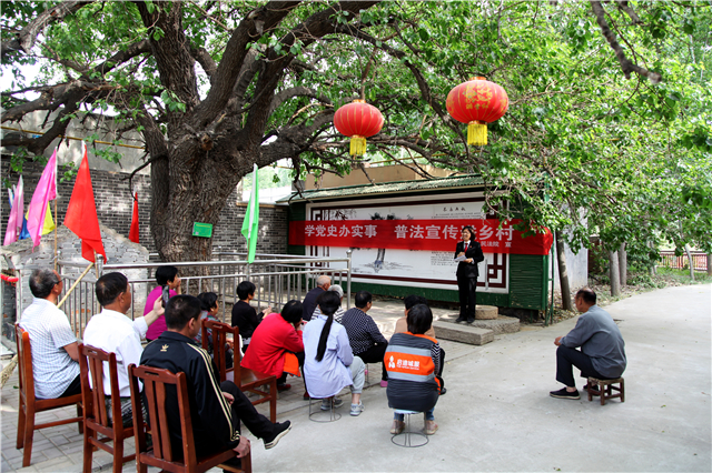 为推动党史学习教育和队伍教育整顿走深走实,激励干警在学思践悟中为民解忧、为民办事,5月11日,汤阴县人民法院干警来到汤阴县韩庄镇小河村,在绿水竹林中,和村民围坐在村口茂密的桑树下,为村民讲党史故事、做普法宣传。