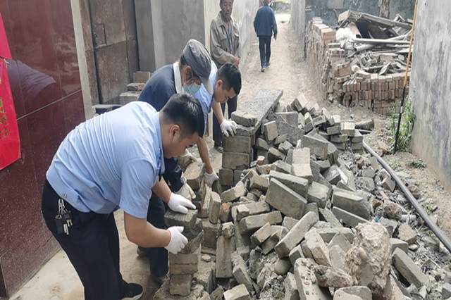 近日,殷都区法院执行警务大队姜队长接手了一起棘手的案件。申请执行人刘某与被执行人韩某均为殷都区三家庄村民,双方系邻居关系,2016年,两人因被告韩某盖房一事发生争执,随后韩某一气之下,将盖房所用的近1000块砖与渣土堆积在原告刘某家门口处,造成刘某一家出行严重不便。后来经公安与村委会多次调解,双方均不能做出让步,导致渣土在原告门口持续堆积长达6年之久,双方矛盾也愈发激化。迫于无奈,原告向殷都区法院提起诉讼,经法院审理后判决由被告韩某将原告刘某家门口的砖块与渣土予以清除。