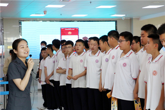 随后,同学们在法院干警的带领下充满好奇地走进法院,兴致勃勃地参观了智能服务区、司法技术室、集中送达中心、智能云柜等场所。干警用通俗易懂的语言,向同学们详细介绍了法院的基本情况以及案件的诉讼流程,使大家对法院各项基本职能有了初步的了解。