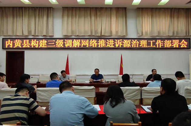 5月14日下午,河南省内黄县人民法院在县政法委召开构建三级调解网络推进诉源治理工作会,县政法委副书记黄虹普主持了此次会议并作讲话,县法院党组成员、副院长尚留伟、立案庭庭长刘瑞敏及综治各成员单位分管领导、各乡镇政法工作主管领导参加了会议。