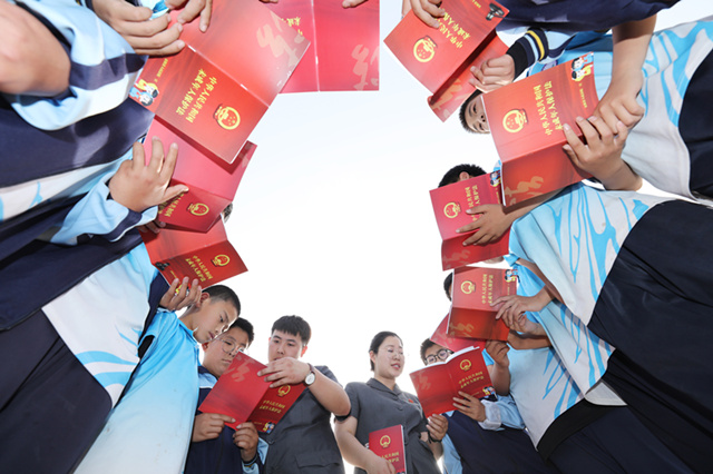 今年6月1日起,新修订的《未成年人保护法》将正式施行。5月28日下午,河南省安阳县人民法院组织法官深入辖区高庄镇第四初级中学,开展“与法同行、护佑成长”为主题的普法宣传活动。通过上法治课、讲解新法条、答疑解惑、发放书籍等形式,为该校近千名学生创造了更安全、更温馨的法治和成长环境。