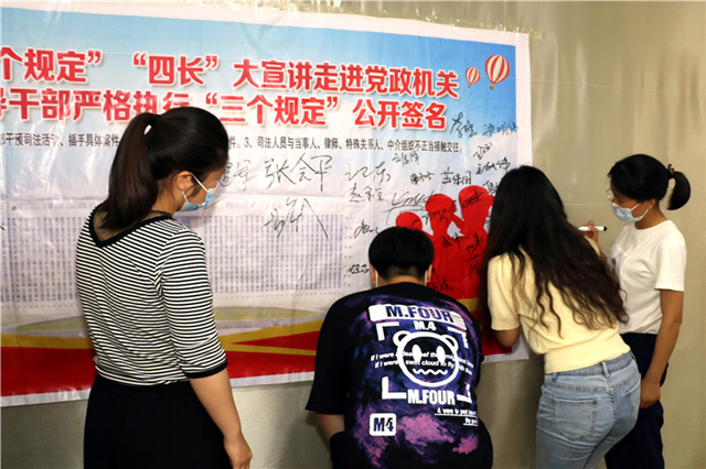 据悉,宣讲活动将持续到6月中旬,实现对全区党政机关全覆盖,每场宣讲期间还组织党政干部就严格执行“三个规定”签订公开承诺书。