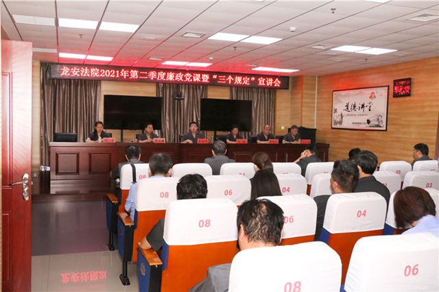 “三个规定”是全面推进依法治国的重要举措,是防止领导干部和司法机关内部人员干预司法活动的“防火墙”和违反规定过问案件的“高压线”;“三个规定”是法官独立审判的重要制度保障,对司法权正确行使起到监督作用,有利于打造一支清正廉洁政法队伍。6月9日下午,河南省安阳市龙安区人民法院党组书记、院长李东华以“三个规定”为主题,为全院干警讲授廉政党课,对“三个规定”再学习。