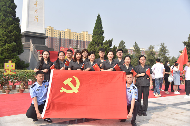 干警们手拿党旗轻轻挥舞,面带微笑齐声歌唱,“没有共产党就没有新中国,没有共产党就没有新中国,共产党辛劳为民族,共产党他一心救中国,……”,随着领唱美妙的歌声响起,来自滑县各个单位的党员和学生们一起高歌,冀鲁豫军区四分区烈士陵园成为了歌声的“海洋”。